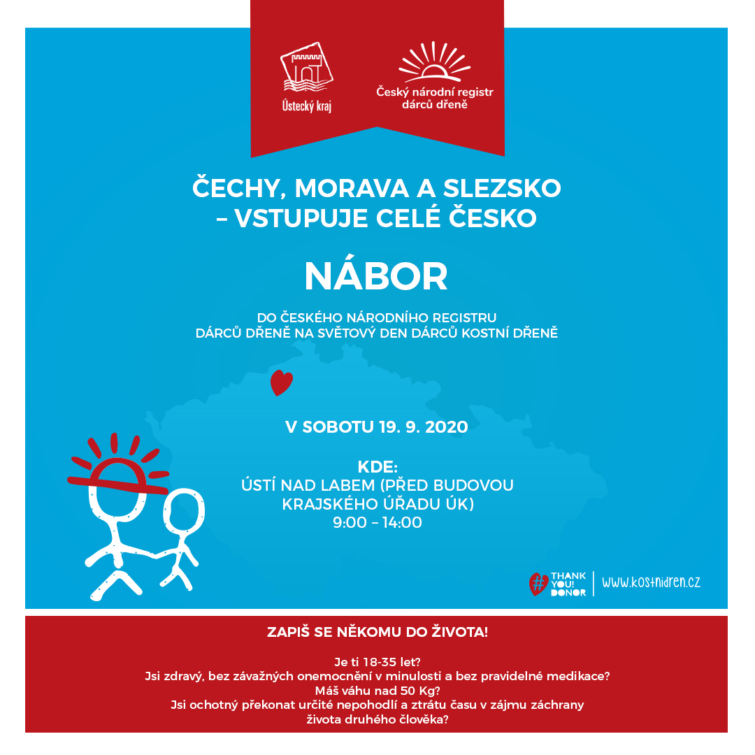 Akce proběhne před budovou Krajského úřadu Ústeckého kraje od 9 do 14 hodin ve spolupráci s Krajskou zdravotní a Českým národním registrem dárců kostní dřeně.