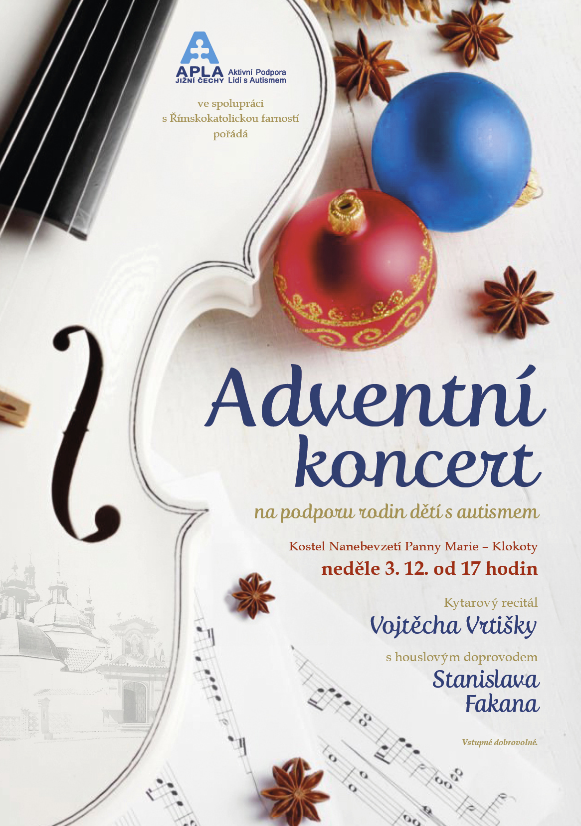 APLA Jižní Čechy, z.ú. ve spolupráci s Římskokatolickou farností pořádají Adventní koncert na podporu rodin dětí s autismem.