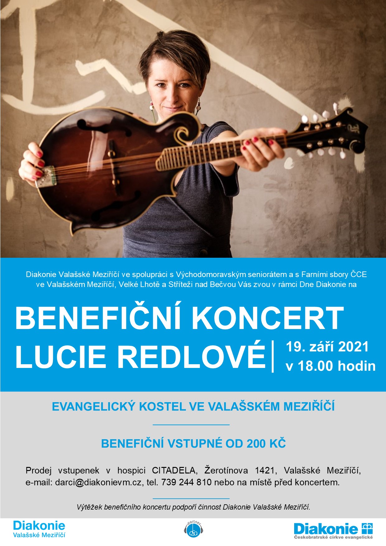Diakonie Valašské Meziříčí ve spolupráci s Východomoravským seniorátem a s Farními sbory ČCE ve Valašském Meziříčí, Velké Lhotě a Stříteži nad Bečvou zvou své příznivce a podporovatele v rámci Dne Diakonie na benefiční koncert Lucie Redlové.