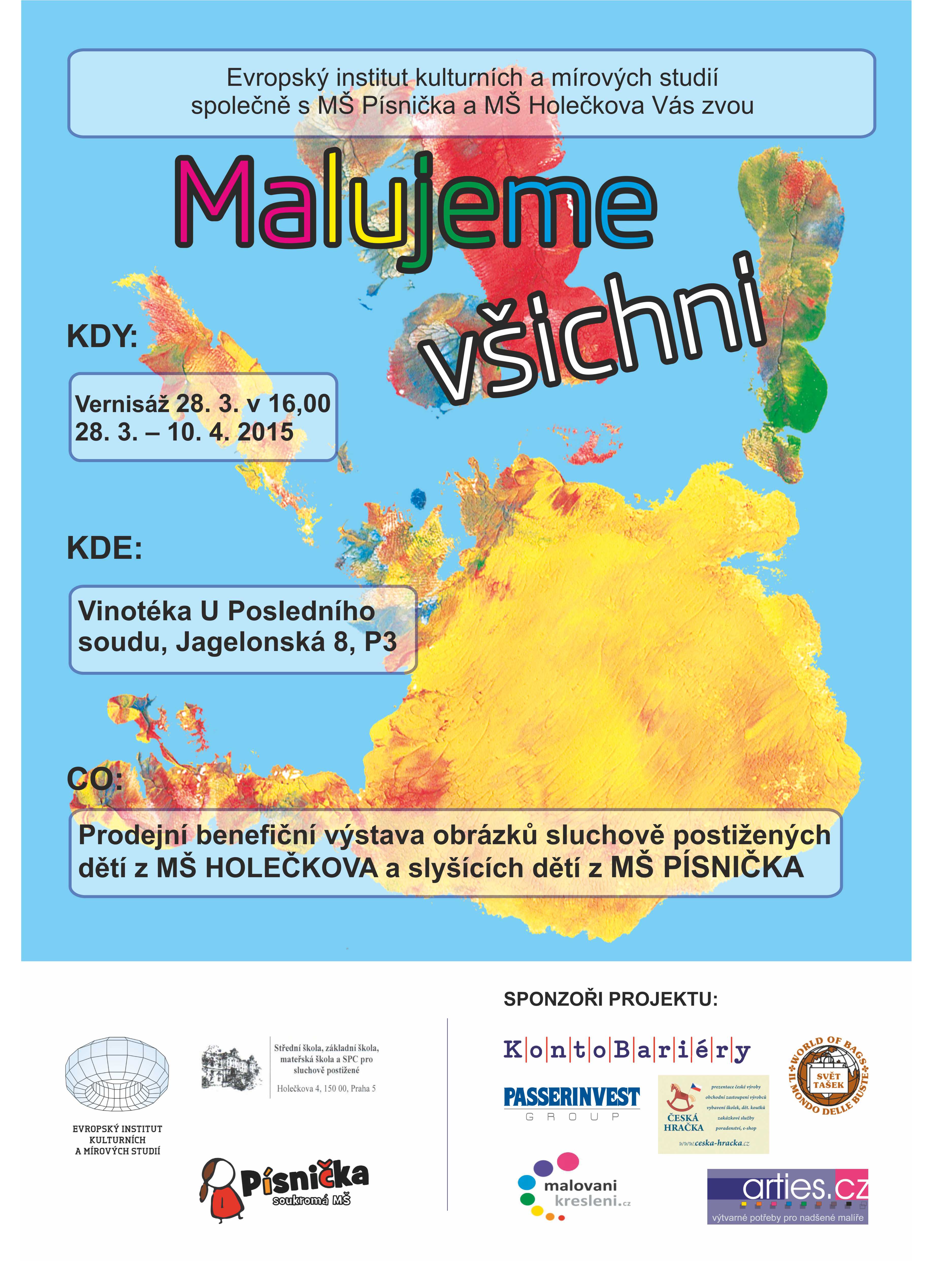Dovolujeme si vás pozvat na slavnostní zahájení Benefiční prodejní výstavy výtvarných děl dětí sluchově postižených z MŠ Holečkova a slyšících dětí z MŠ Písnička, které se koná v sobotu 28. 3. 2015 v 16,00 hodinve vinotéce U posledního soudu, Jagelonská 8, Praha 3.