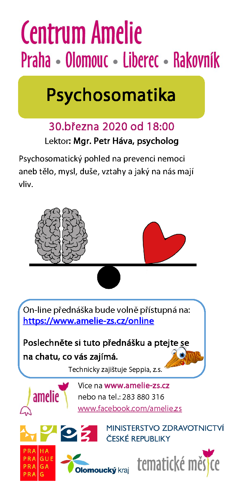 Přístup na přednášku přes odkaz: https//www.amelie-zs.cz/online v aktuálním čase akce. Zdarma.
