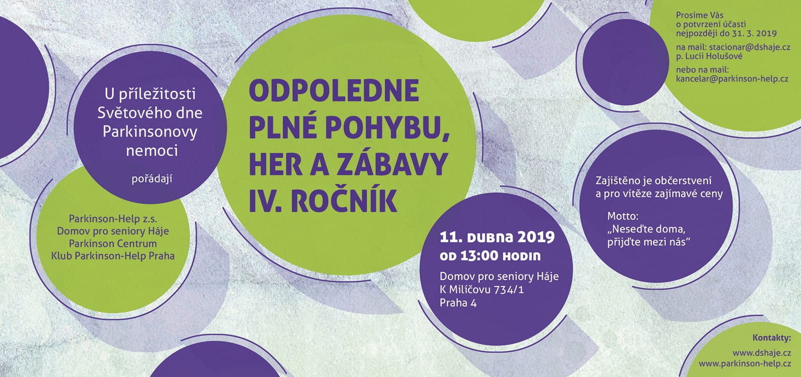 Již IV. ročník pořádá Parkinson-Help z.s. s DS Háje pro všechny nemocné Parkinsonovou nemocí u příležitosti Světového dne Parkinsonovy nemoci.