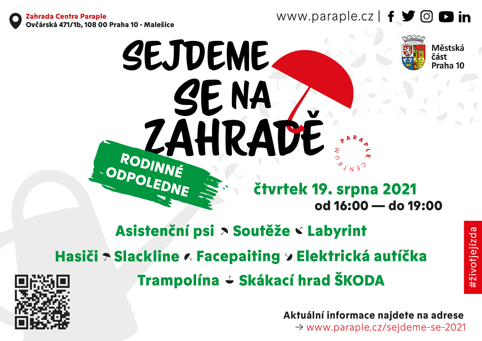 Zahrada Centra Paraple, kterou naši klienti rádi (a oprávněně) nazývají Oázou Malešic, se i letos v srpnu otevře akci Sejdeme se na zahradě... aneb zábavné rodinné odpoledne. Těšit se na vás budeme ve čtvrtek 19. srpna od 16:00 do 19:00 s připraveným bohatým program.
